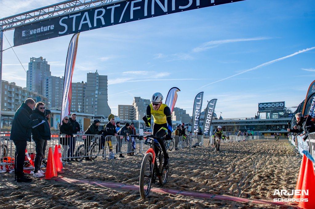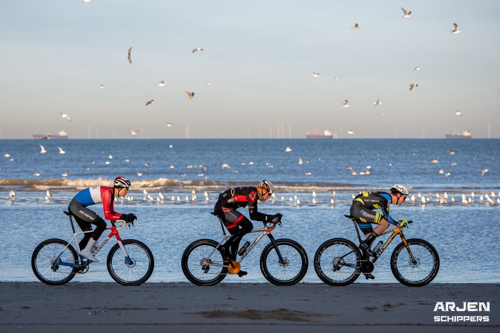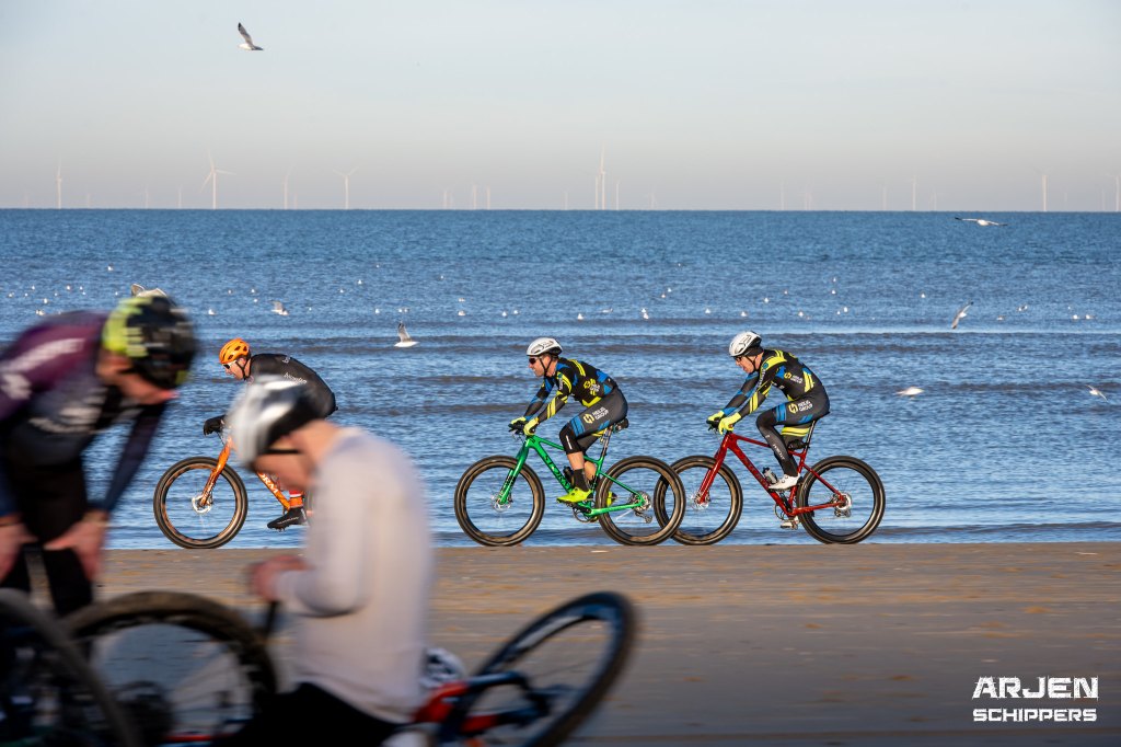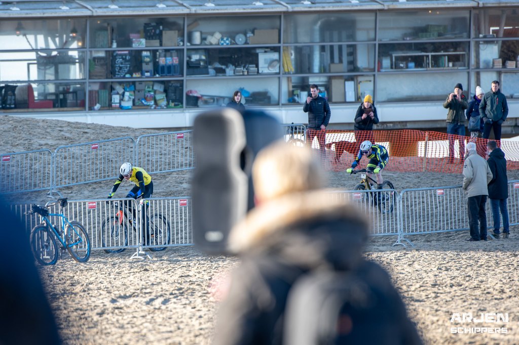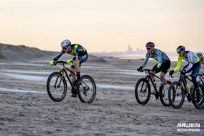 Normale startprocedure, grote groep tot het eerste keerpunt, en aan de finish is het Menno die (in de Topcompetitie leiderstrui) wint! Rick wordt tweede na goed teamwork!